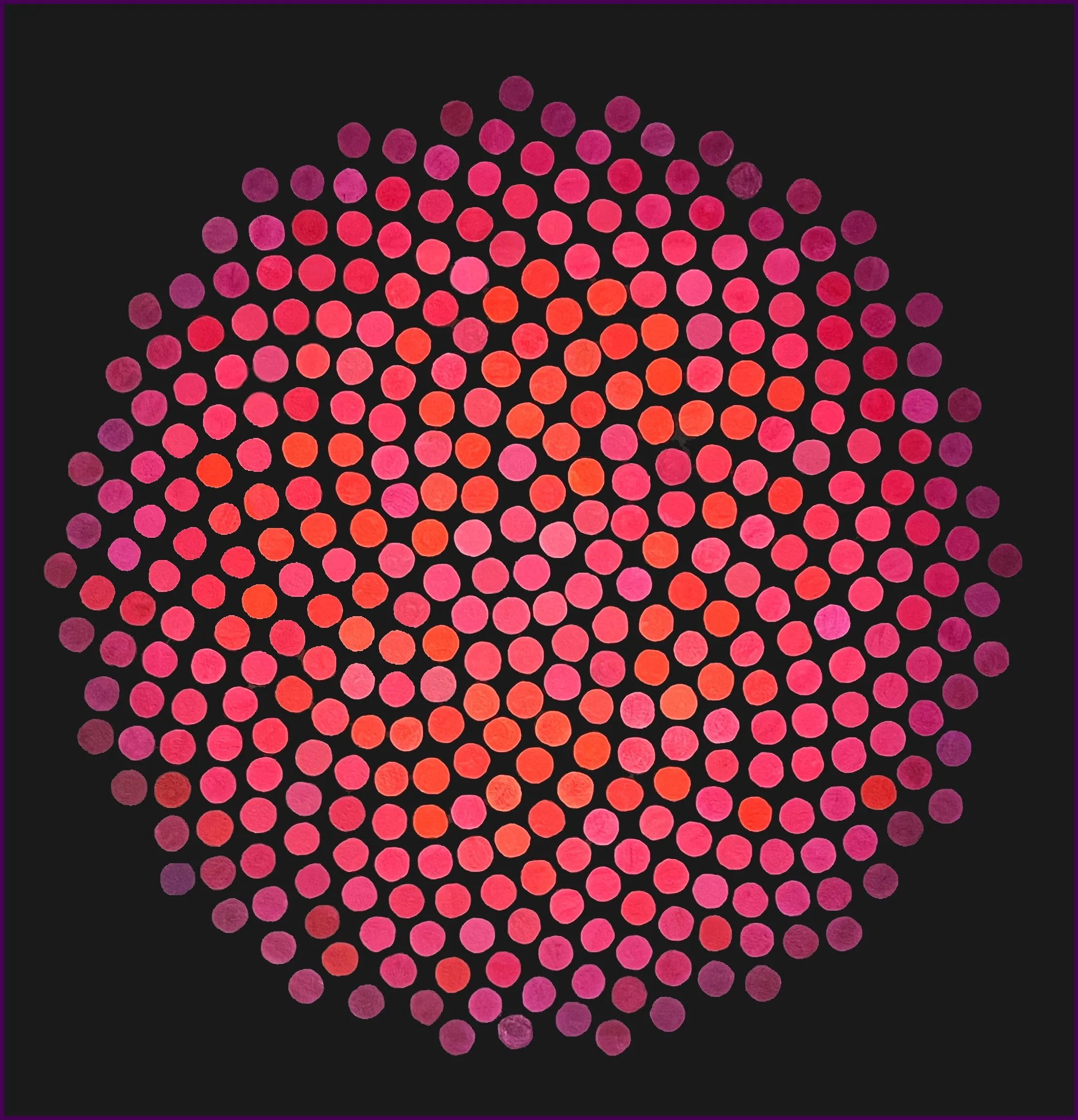 Painting is my practice of meditation. The Earth-Veritas series of deeply personal mandalas present a process of centering in an intuitive dream state of calm and heightened awareness. The Orbs, metaphors for heightened consciousness, reflect on the sublime and the beautiful.